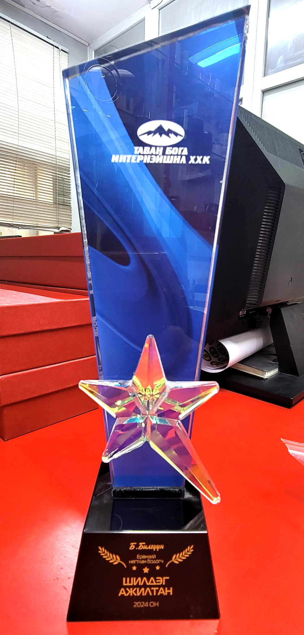 Манай хамт шинэ загварын болор өргөмжлөл, шилэн өргөмжлөл хийж байна. Болор шилэн өргөмжлөл дээр наалт хийхгүй лазераар шивж хийж байгаа болохоор хуулрахгүй, урт удаан эдэлгээ даах давуу талтай. Өнгөт болор шилэн өргөмжлөл нь тусгай UV хэвлэлтээр хийдэг болохоор энгийн хэвлэлттэй хуулганаас өнгө, үзэмж болон тогтоц илүү сайн чанартай хийгдэнэ.